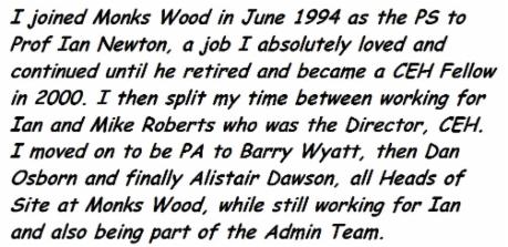 Ruth Swetnam tells us she is doing fine and she has paid a brief visit back to Monks Wood (the wood itself).
